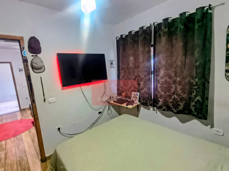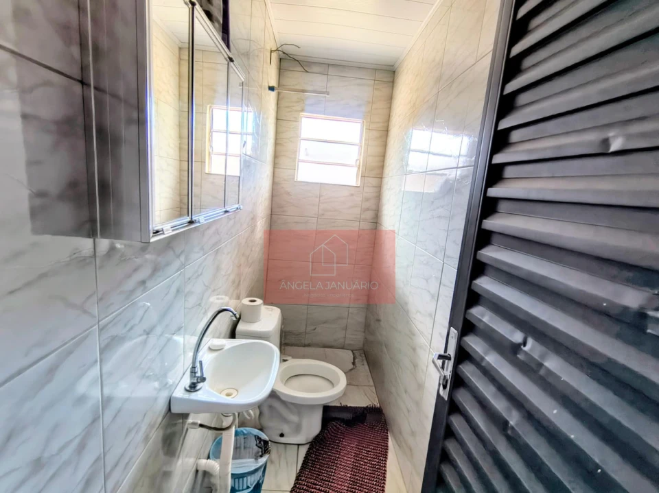 Edícula com área de churrasqueira, banheiro, e um quarto.